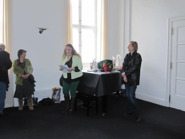 Efter denne ultrakorte brandtale vil jeg også takke Kulturstyrelsen for at lægge lokale til i dag. Jeg er jo klar over, at ”man” herinde gerne havde set prisoverrækkelsen henlagt til fx Dansk Forfatterforenings smukke stuer i Strandgade (simpelthen for at slippe væk fra arbejdspladsen), men næ nej, vi – oversætterne – vil gerne betræde ”de bonede gulve”, fordi vi har brug for synlighed, og denne synlighed mener vi bedst kommer til udtryk på … netop disse bonede gulve.
