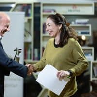 Yana Genova modtager prisen på Helle Dalgaards vegne
