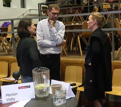 Anita Frank Goth og Gitte Buch-Hansen taler med Hieronymusdeltager Bodil Christiansen