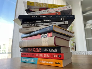 Ja, ja, ja, jeg ved jo godt, at der er alt for mange, men der er så meget, jeg gerne vil læse! Det meste er irsk og hentet med hjem fra en researchtur i sidste måned. Irland er virkelig et frugtbart litteraturland i øjeblikket – niveauet er tårnhøjt. Jeg glæder mig især til Jan Carsons Firestarters. Den eneste bog, jeg nåede at få læst dette forår, var hendes seneste, The Raptures, om en skoleklasse i en lille, nordirsk landsby, der rammes af en mystisk, dødelig sygdom. Bagtæppet er de sene 1980’ere, og fredsaftalerne kan skimtes i horisonten, men i protestantiske Ballylack er der ingen morgenluft at vejre, slet ikke for arme Hannah, hvis forældre tilhører den rabiate ende af det religiøse spektrum. Romanen er en skarp og kølig satire over samfundet dengang og samfundet nu – jeg håber, forgængeren er lige så god.
