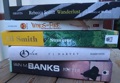 Sommeren skal også fyldes med magi og meget fjerne steder: Fjorten år er der gået siden jeg fik mammutromanen Matter af Iain M. Banks af min søster. Jeg nåede at læse 30 sider, så blev den pakket ned og lå i kasse, mens jeg rejste væk. Nu er den blevet støvet af og dens 600 siders intrikate universbygningsprosa, sci-fi-detaljer og eventyrfortælling med indlagt humor er klar til denne sommer. Banks er en mester inden for sin genre, og Matter er så lang, som en sommer kræver. Men jeg skal skynde mig at læse færdig; for første gang har jeg nemlig lovet at læse en bog på min 11-årige søns anbefaling denne sommer – The Dragonet Prophecy af Tui T. Sutherland, som er den første i rækken af en 15 bind lang serie om drager, der kæmper om magten et fjernt og underligt sted, hvor menneskene er reduceret til ådselædere. Det er en helt overordentlig jublende glæde, at boganbefalingerne nu pludselig går den anden vej.