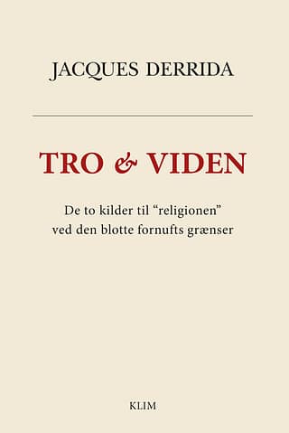 Den franske filosof Jacques Derridas lille bog Foi et savoir. Les deux sources de la ”religion” aux limites de la simple raison fra 1996 foreligger nu i en smuk dansk oversættelse begået af Bjarke Mørkøre Stigel Hansen og Kristian Olesen Toft. Det er en lille bog, men en stor bedrift. I en anden forstand er det en stor bog, og med lidt frækhed kunne man tilføje, at denne oversættelse blot udgør den lille oversættelse i forhold til den store oversættelse, der forbliver læserens lod.