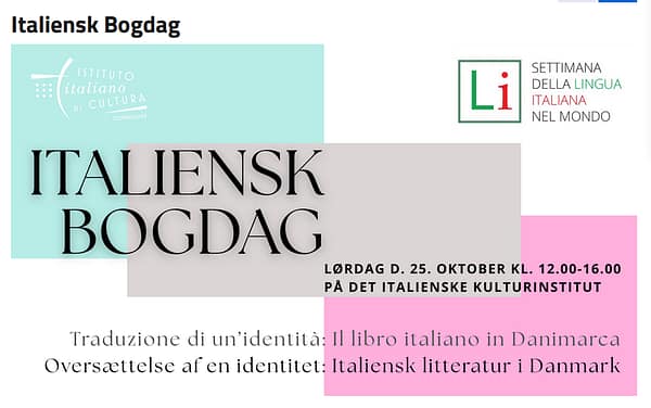 Under overskriften “Oversættelse af en identitet. Italiensk litteratur i Danmark” inviterer Det Italienske Kulturinstitut til Italiensk bogdag lørdag d. 25. oktober kl. 12-16. Det sker i anledning af den årlige uge for italiensk sprog i verden, Settimana della Lingua Italiana nel Mondo.